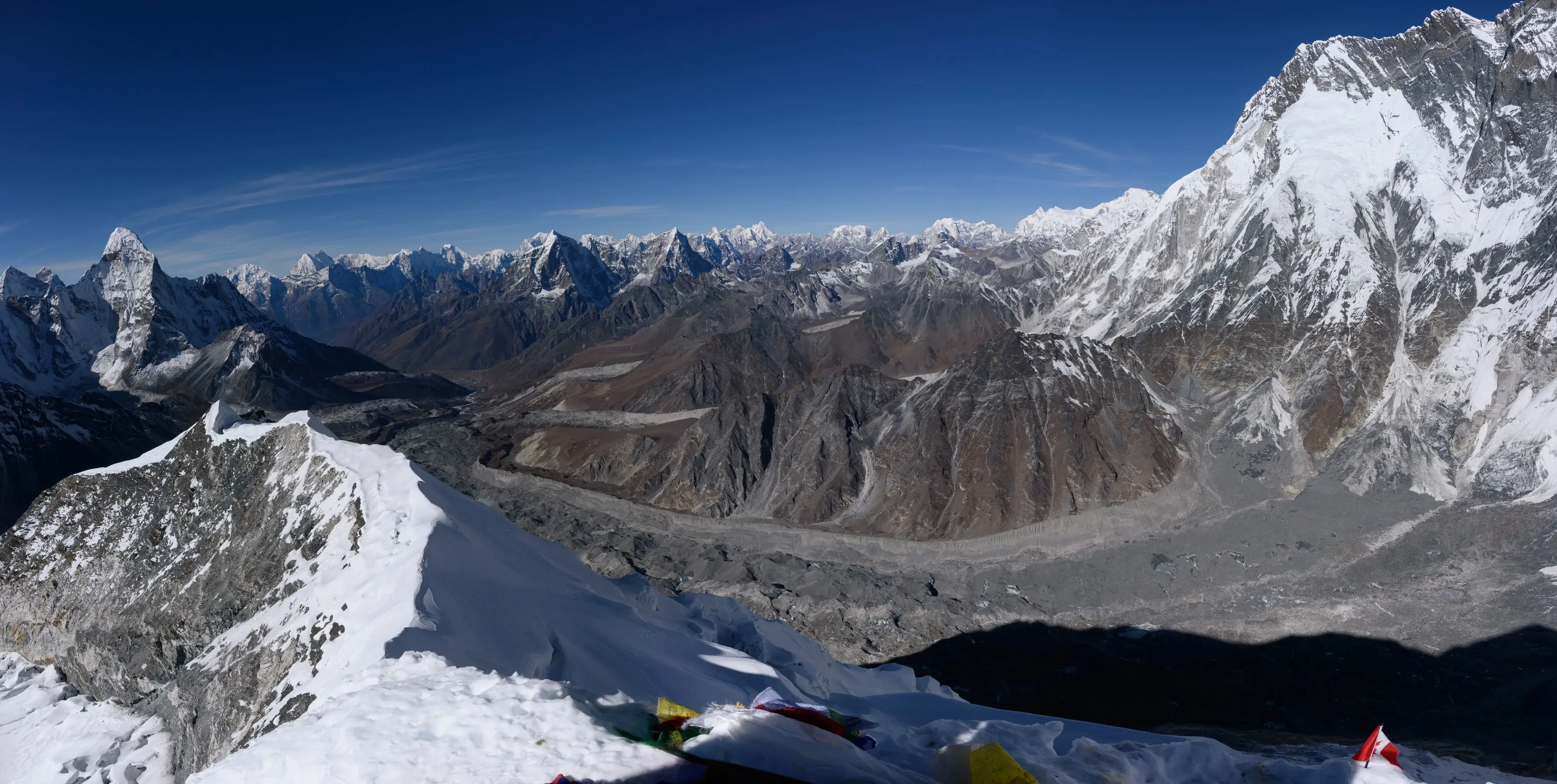 Careful acclimatization days in Namche Bazaar and Dingboche prepare you for both Everest Base Camp and the Island Peak summit. From Island Peak Base Camp, climbers receive basic mountaineering training before attempting the summit with experienced Sherpa guides. The climb involves glacier travel, fixed ropes, and a rewarding final push to panoramic views of Lhotse, Nuptse, Ama Dablam, and surrounding Himalayan giants.